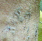 Unter der Haut gelegene, netzförmig angeordnete, unregelmäßig verteilte, leicht geschlängelte Venenerweiterungen, die nicht mit der normalen Venenzeichnung verwechselt werden sollten.