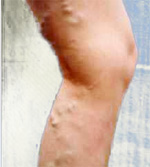Häufiger sind die Seitenäste im Bereich der Vena saphena magna betroffen.
