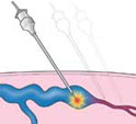 Bei der Verödung (Sklerosierung) wird ein Verödungsmittel mit einer feinen Nadel direkt in die Krampfader gespritzt.